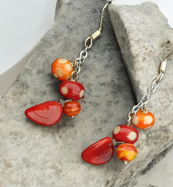 Crochets argent, chaine acier inox, perles en verre de Murano filés à la flamme