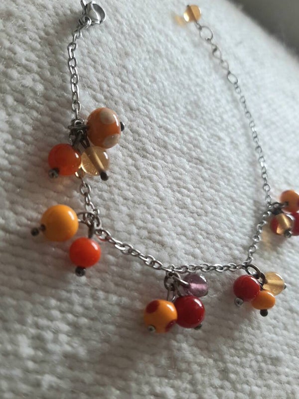 Chaine acier inox, perles en verre de Murano filé à la flamme